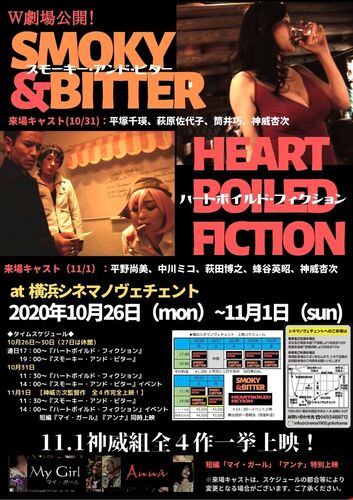 ■横浜・シネマノヴェチェント 2020年10月26日(月)~11月1日(日) 『スモーキー・アンド・ビター』&『ハートボイルド・フィクション』 W劇場公開!&神威杏次特集上映 タイムスケジュール 当日の模様 告知フライヤー等 タイムスケジュール 10月26日~30日…